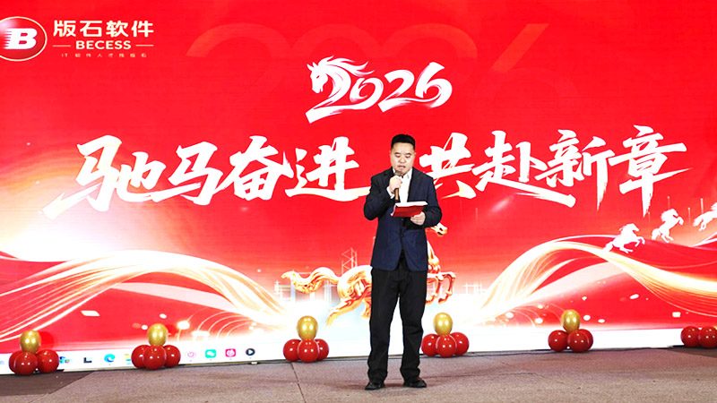 2026年1月24日晚,南京丰大国际大酒店华灯璀璨,笑语盈堂,版石软件“驰马奋进 共赴新章”主题年会在此隆重举行。公司董事长陈晓存、KA事业部总经理马莉莉、各业务板块负责人与全体员工欢聚一堂,共同回顾过去一年的奋斗征程,展望充满机遇的新一年。