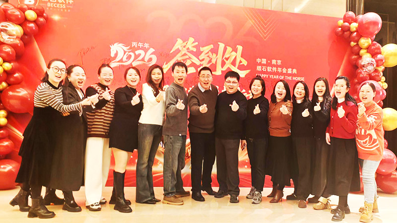 晚会尾声,全体人员齐聚舞台,用一张张灿烂的笑脸,定格了2025年丰收的喜悦与团队的温度。在温暖的旋律中,大家共同举杯,互道祝福。旧岁已展千重锦,新年再进百尺竿。南京璀璨的夜色,见证了版石软件这个充满激情与梦想的集体对过去一年的深情告别,更照亮了他们对未来新征程的无限憧憬。满怀信心与力量的版石人,已整装待发,准备在2026年携手共赴下一个辉煌。