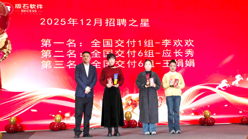 年会的重头戏之一是对优秀员工的表彰。在热烈的掌声中,数十位在过去一年表现卓越的员工依次上台,从公司领导手中接过了象征荣誉的奖杯与证书。他们中既有技术攻坚的“先锋者”,也有客户服务的“贴心人”,还有默默支持保障的“幕后英雄”。每一段颁奖词,都诉说着一个个关于专注、创新与奉献的故事。这份认可不仅是对个人成绩的肯定,更是对版石“奋斗者文化”的生动诠释。